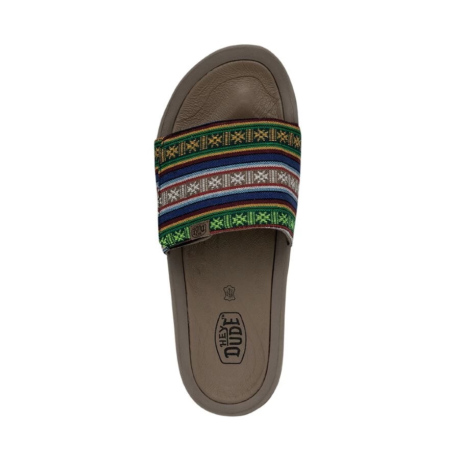 Where style and comfort meet – showcasing our newest HEYDUDE sandal. Perfect for any fiesta or siesta. With a serape-styled upper strap, the Phoenix Blanket slides pay homage to Mexican jorongo shawls, while using a poly-blend mesh material and a leather-lined foot bed to stay put. Your feet will celebrate. The sidewalk will stare.